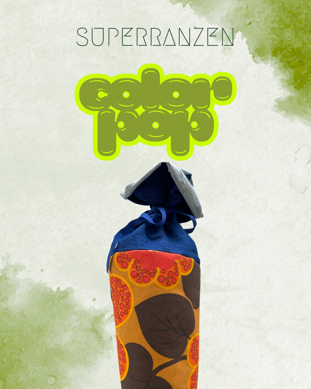 Pop Schultüte in strahlenden Farben aus original oldschool 70 iger Jahre Markisenstoff.