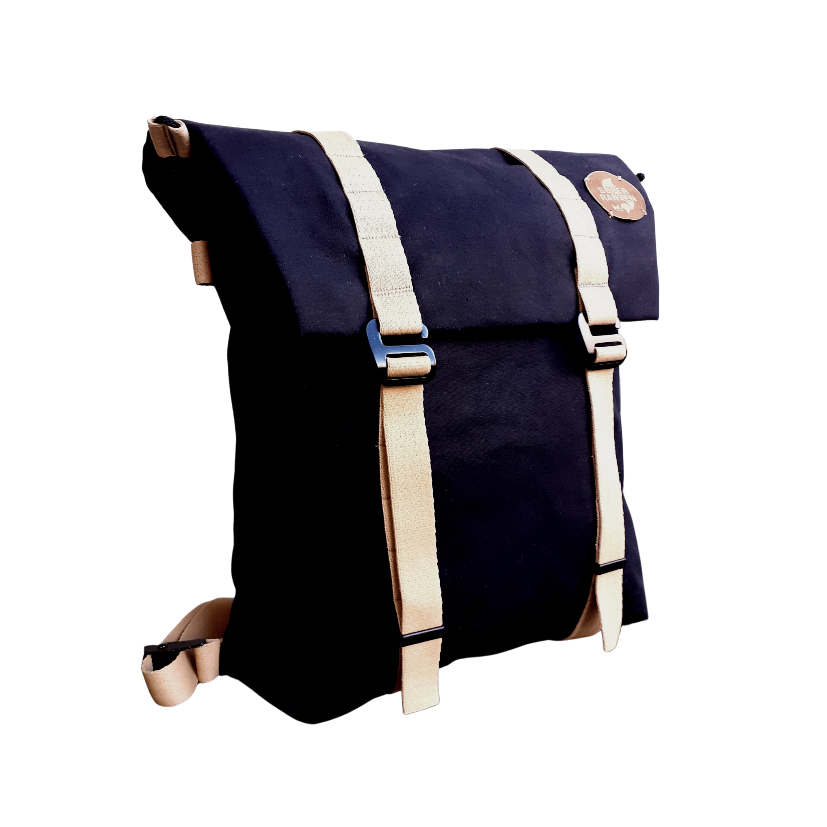 Wasserfestes Outdoormaterial 100% Baumwolle mit einer Wassersäule von 30 cm ( 17 cm ist der normale Durchschnitt ). Durch die herausnehmbare Innentasche aus 100 % Recyceltem Polyester R-PET kann der Rucksack auch flach zusammengelegt im Reisegepäck mitgenommen werden. Mit extra Innenfach für Phone, sowie Büchertasche und praktischem Schlüsselkarabiner.