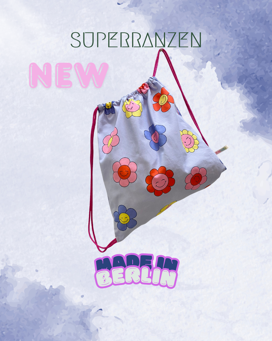 Gute Laune Sportbeutel Happy Flower Blue-Wasserabweisend und robust.